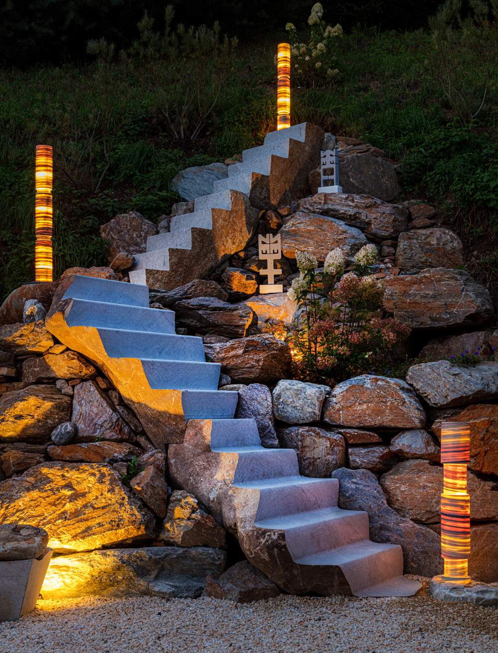 Maßgeschneiderte Steinelemente für Außenräume.